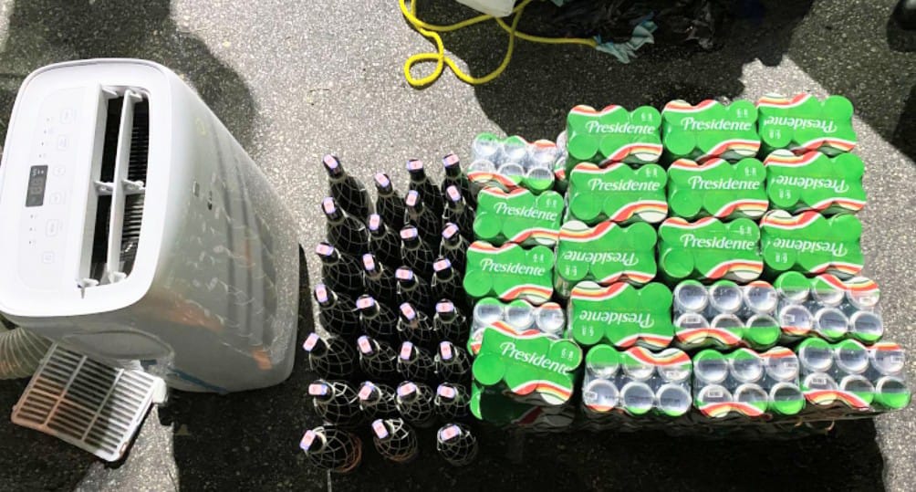 El saco contenían en su interior 22 litros de Brugal Extrviejo,7 litro ful de la misma marca, 76 sipac de cervezas de 6 unidades, para un total de 456 y un aire acondicionado.