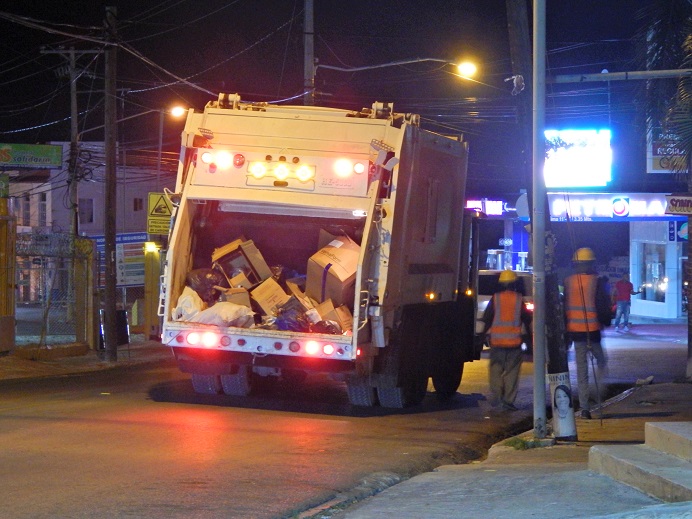BARAHONA.– La empresa recolectora de basura “DIOR” dejó la noche del sábado boquiabiertos a numerosos pobladores que presenciaron por primera vez un camión de basura trabajando en horas nocturnas.
