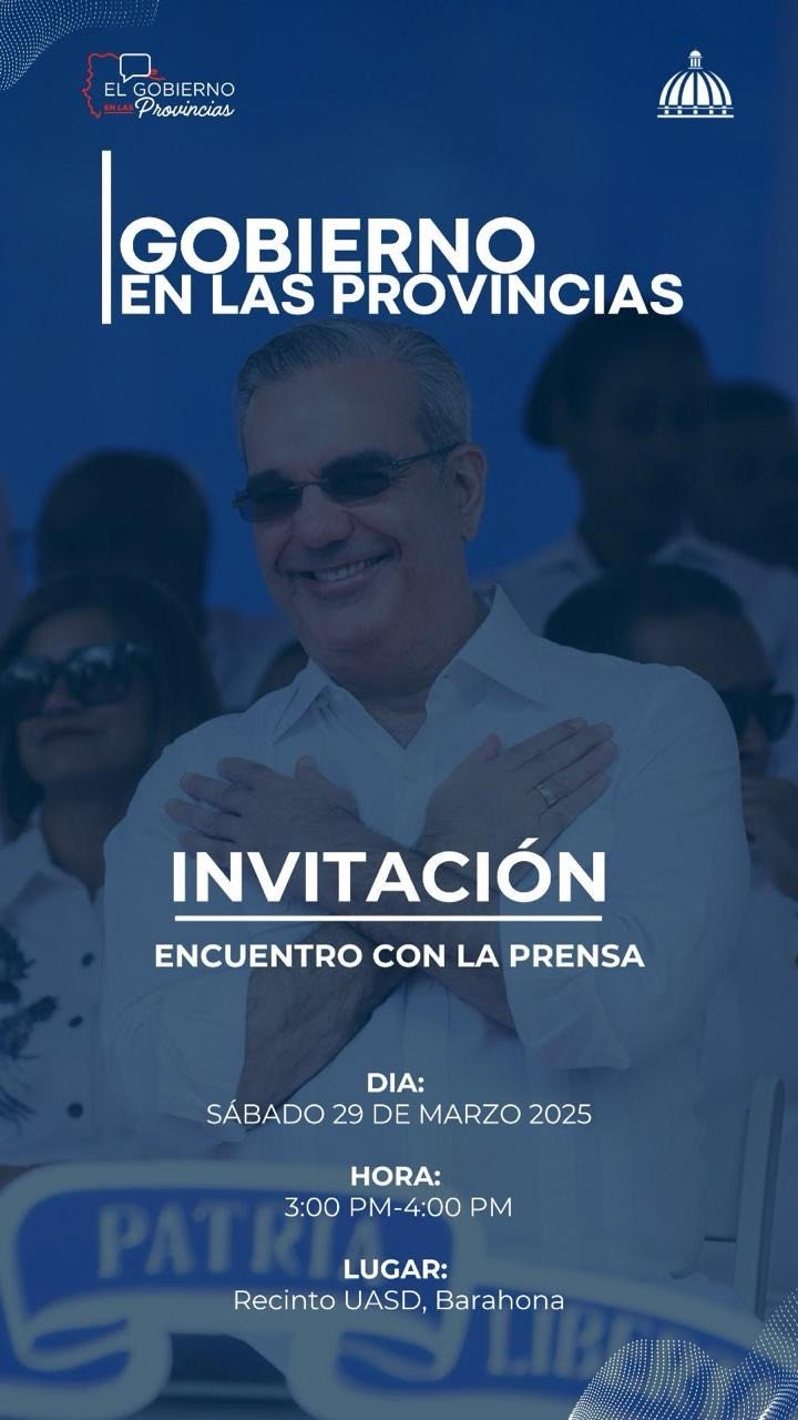 BARAHONA. – La gobernadora provincial de Barahona Oneida Feliz invitó a los miembros de la prensa local a participar del “Gobierno en las Provincias” este sábado 29 de marzo en el Recinto-UASD de esta ciudad.