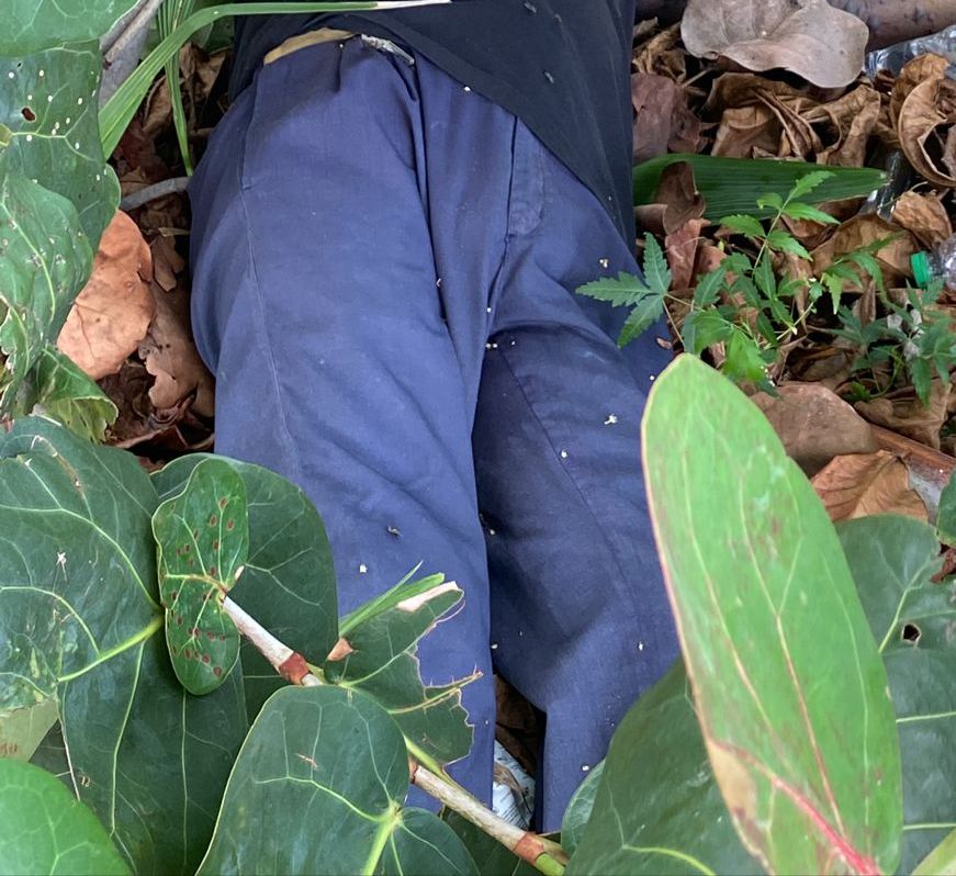 El cuerpo estaba a boca arriba debajo de varias matas de uvas playeras. Vestía de poloshe negro y pantalón azul.