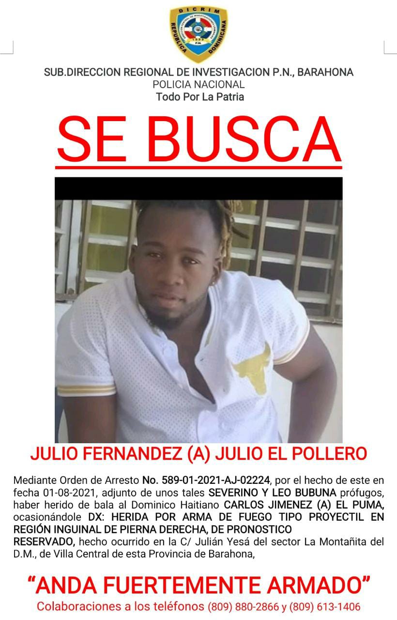 BARAHONA.- La Policía exhortó este sábado a un hombre identificado como Julio Fernández (El Pollero), a que se entregue para que responda por un hecho que se le atribuye.