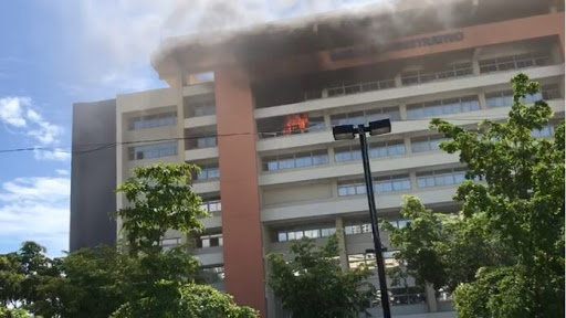 Un repentino incendio inicio este viernes en el séptimo piso del edificio administrativo de la Universidad Autónoma de Santo Domingo (UASD), quemando al menos dos oficinas.
