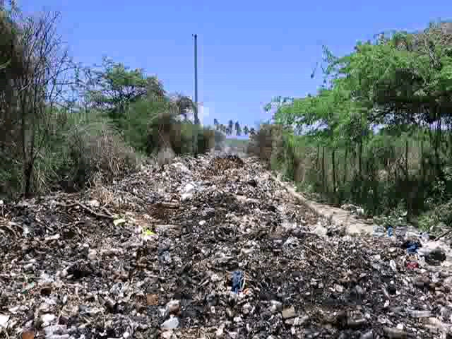Explican que los recogedores de basura junto al chofer de los camiones, por no tomarse la molestia de ir directamente al interior del vertedero en cuestión, depositan los desechos en la entrada y el resto de la carretera que también conduce al Cementerio Municipal.