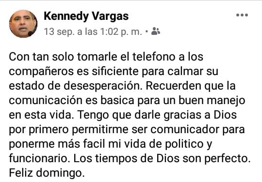El funcionario deportivo, que además es periodista, se expresó en esos términos en su cuenta de Facebook, donde reconoció que la comunicación es básica para un buen manejo en esta vida.