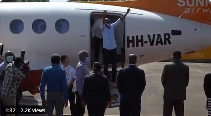 “Este trabajo se logra gracias a los materiales estatales posicionados en los departamentos en el marco de la Caravana del Cambio”, tuiteó Moïse junto a un vídeo en el que se le ve aterrizar en la nueva terminal aérea.