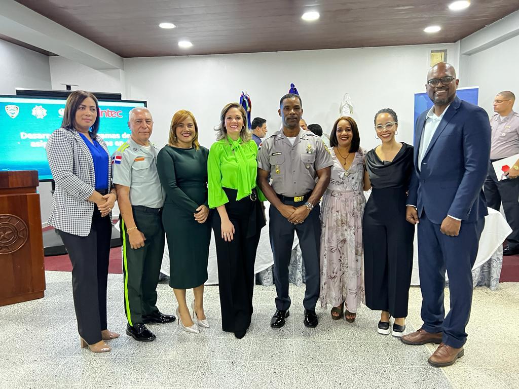 También, Miguel Escala, coordinador del Comité Académico para la Reforma y Reestructuración del Sistema Educativo de la Policía Nacional, Lelis Canalda, coordinadora desarrollo curricular de INTEC y el coronel Jorge Landeta Estrella, director de la Escuela de Entrenamiento Policial.