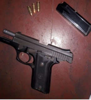 Los agentes del orden le ocuparon al desaprensivo una pistola de calibre 9 milimetros con tres capsulas para las misma.