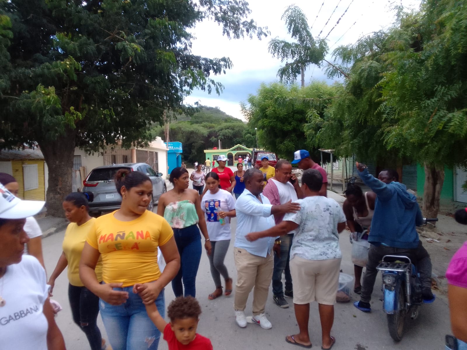 LAS SALINAS,Barahona.- Aspirante a la alcaldía por el PRM, Carlos Feliz (Eugenio), realizó este jueves un mano a mano en los barrios Batey Paja Santa Lucia y la Duarte de este municipio.