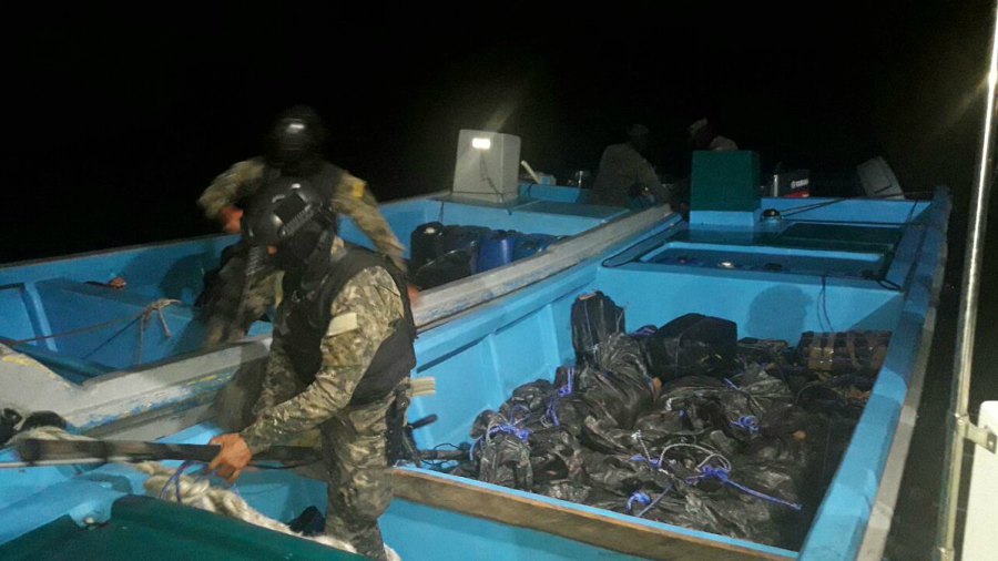 En la embarcación de unos treinta y dos pies de eslora, las autoridades ocuparon un gran cargamento de droga; así como tres motores fuera de borda, dieciocho garrafones conteniendo combustible