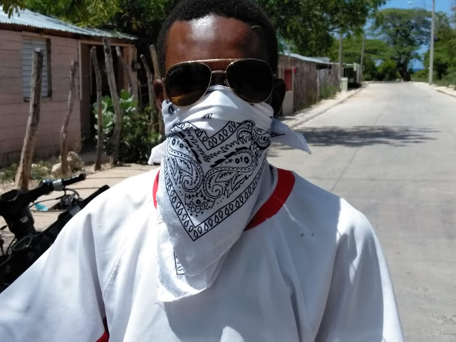 PEDERNALES .-La mascarillas en esta ciudad del sur brilla por su ausencia, varias personas han tenido que utilizar paños de cabeza, pañuelos, y hasta pedazos de telas para cuidarse de la pandemia del coronavirus.