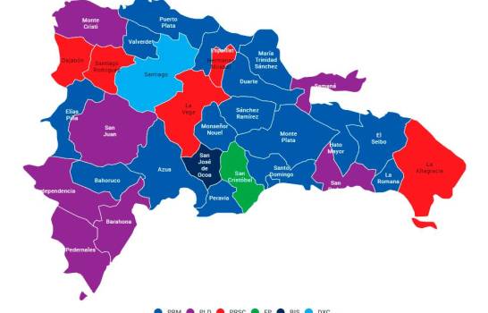 El PRM mantiene hasta el momento una ventaja en Elías Piña, Bahoruco, Azua, Peravia, Santo Domingo, Distrito Nacional, Monseño Nouel, Sánchez Ramírez, Monte Plata, Hato Mayor, El Seibo y La Romana.
