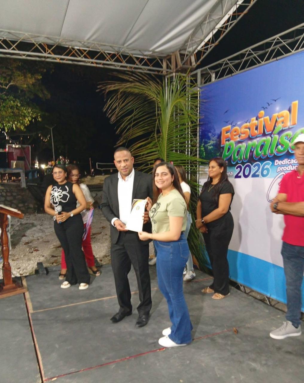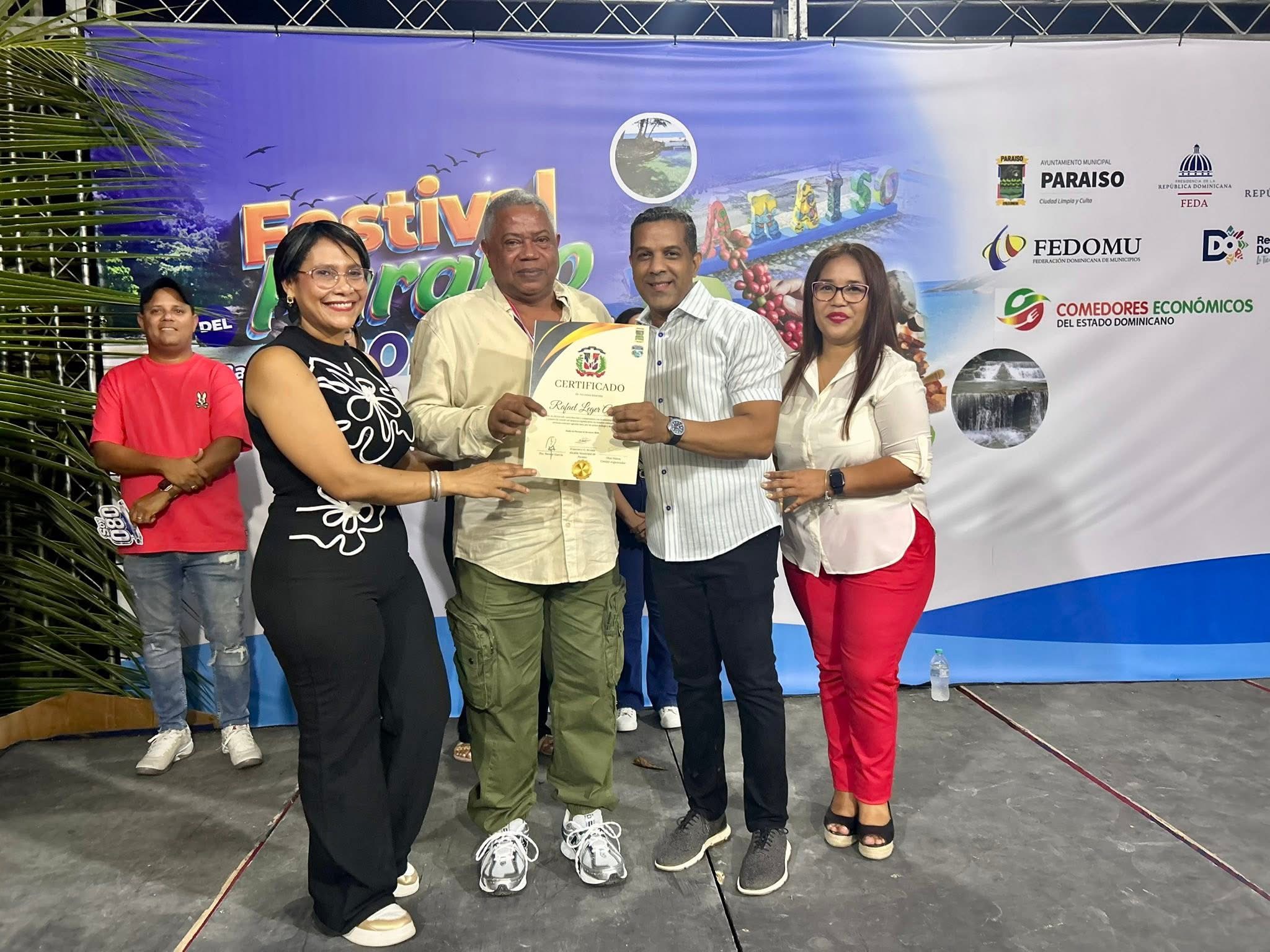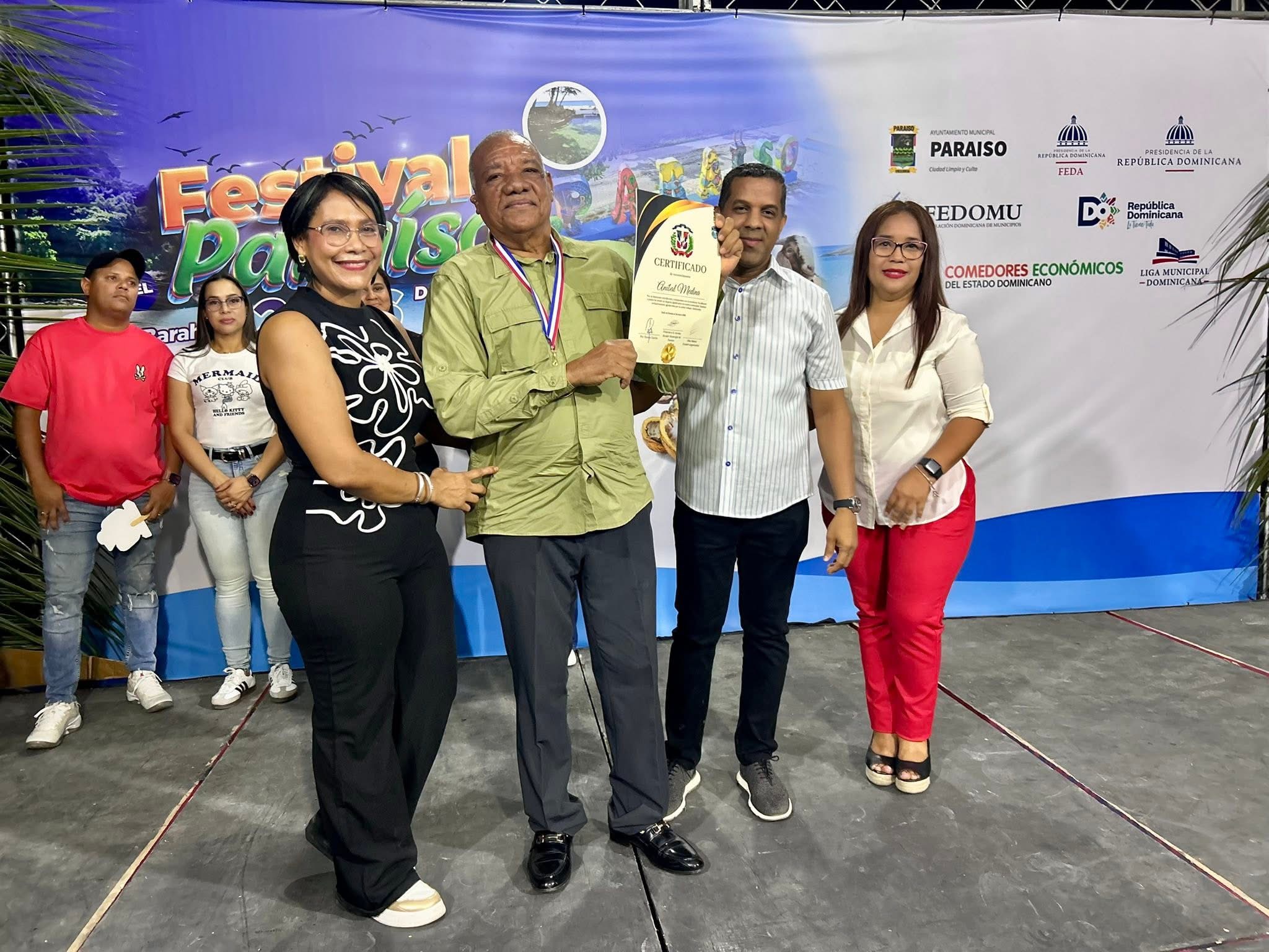 PARAÍSO, Barahona.- Numerosas personalidades oriundas de Paraíso, que residen fuera y dentro del municipio, fueron reconocidas la noche de este sábado por los “Paraiseros Ausentes” durante la celebración de la Cuarta edición del “Festival Paraiso 2026” por sus valiosos aportes al despegue y desarrollo de la comunidad.
