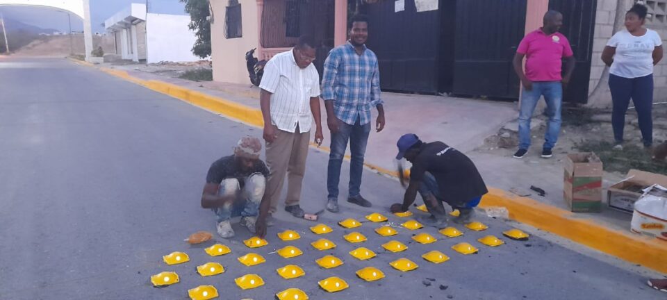 VICENTE NOBLE, Barahona.-La Alcaldía municipal continúa con el programa de señalización, colocación y sustitución de muros por reductores de velocidad en la entrada, dentro y en la salida de la comunidad.