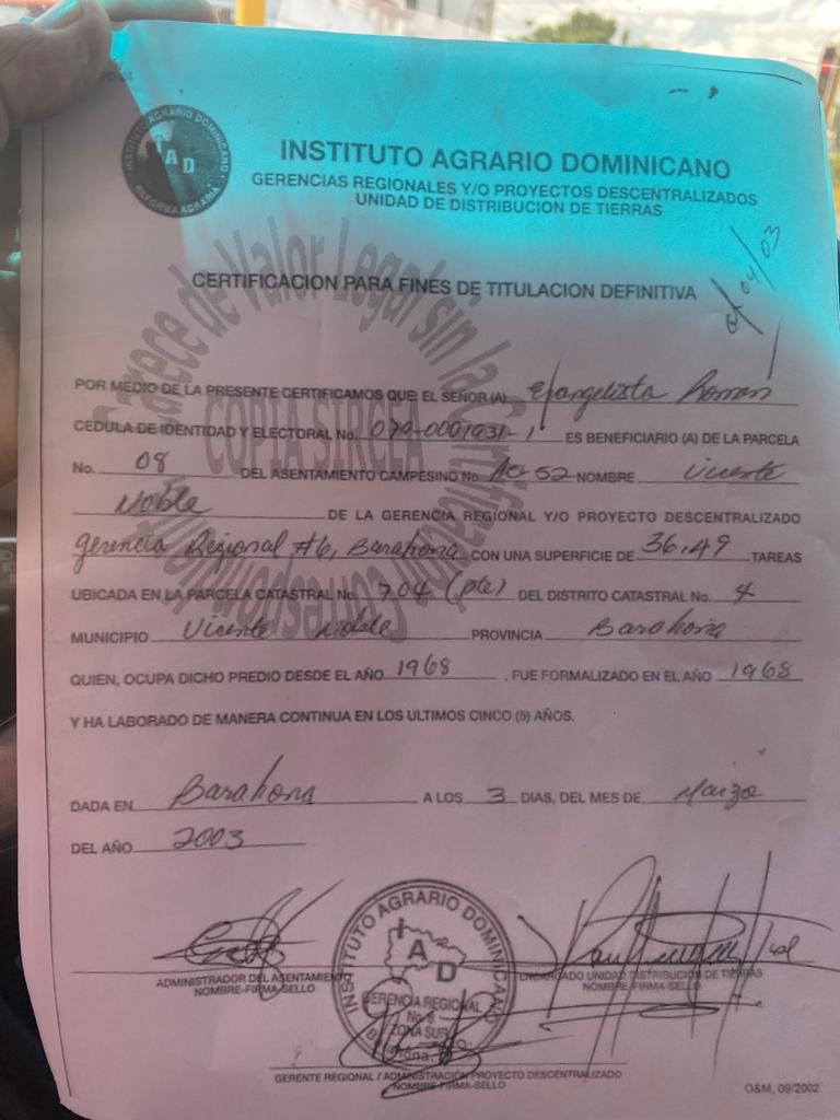 VICENTE NOBLE: Familia Roman Sierra pide a jueces intervenir supuesto caso fraudulento en Barahona